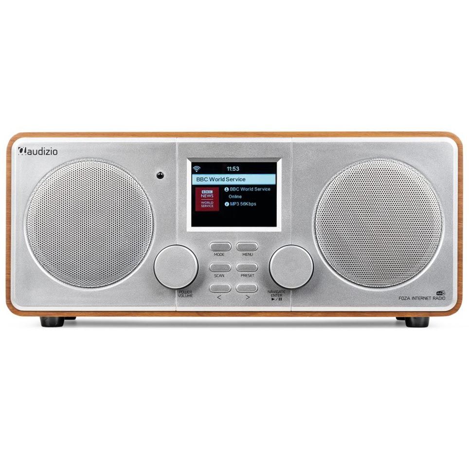 The Audizio Foza WIFI Internet Stereo Radio with DAB+ (Silver) combines timeless wooden elegance with state-of-the-art connectivity. Access over 32,000 global stations, stream music from any smart device and enjoy room-filling 50 W stereo sound.
