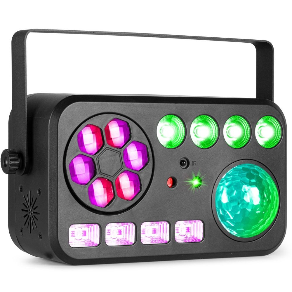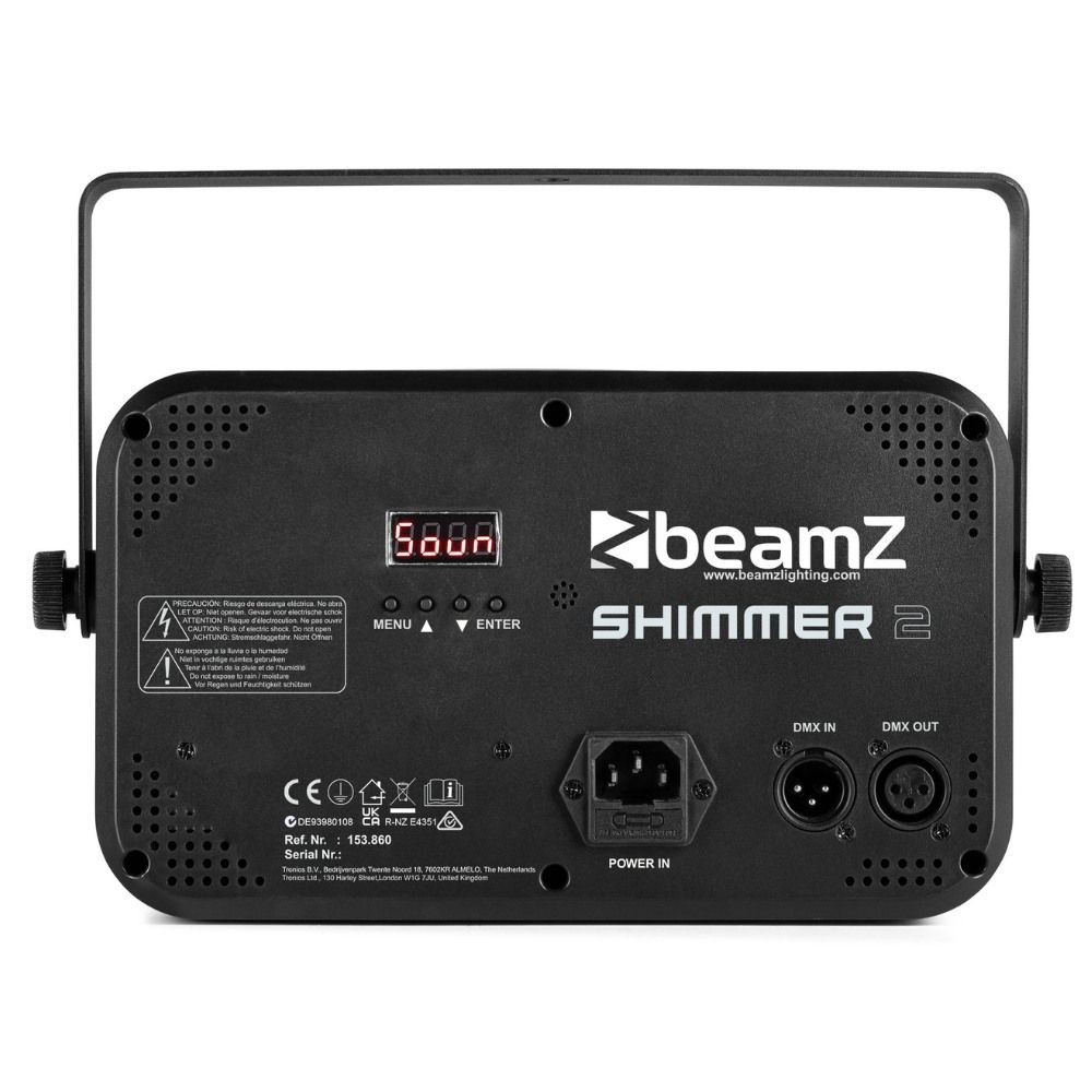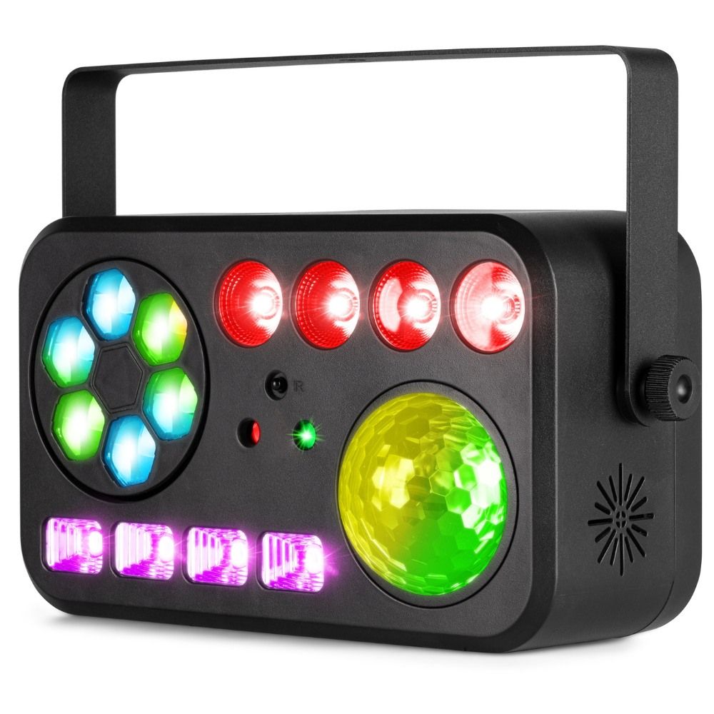 Moreover, with DMX and stand-alone modes, plus master/slave functions, the Beamz Shimmer2 is perfect for both beginners and pros. It’s sound activated with adjustable sensitivity, or choose the auto mode with pre-programmed shows for instant magic. Also, the LED display and IR remote control make setup and operation straightforward.