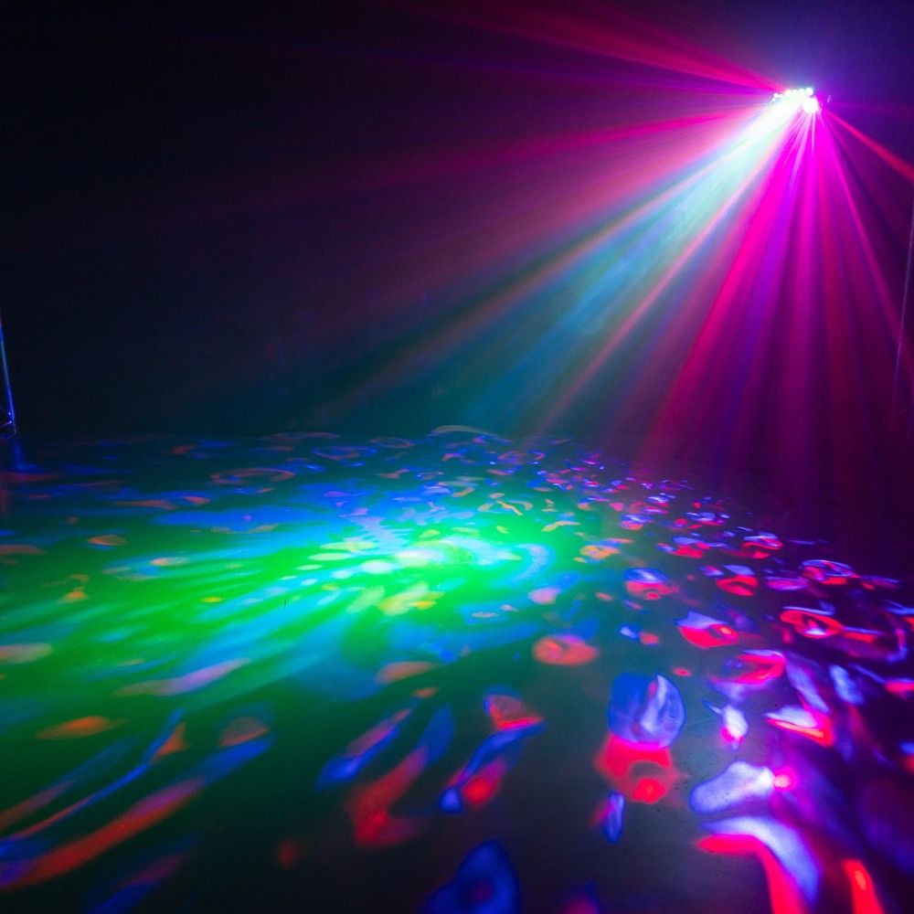 Firstly, the Shimmer2 packs 6 exciting effects into one compact device. From the vibrant LED Bee Eye and Water Wave effects to the versatile PAR lights, you have total control over your visual display. Whether you want quick automatic shows or DMX control for precision, this unit adapts seamlessly.