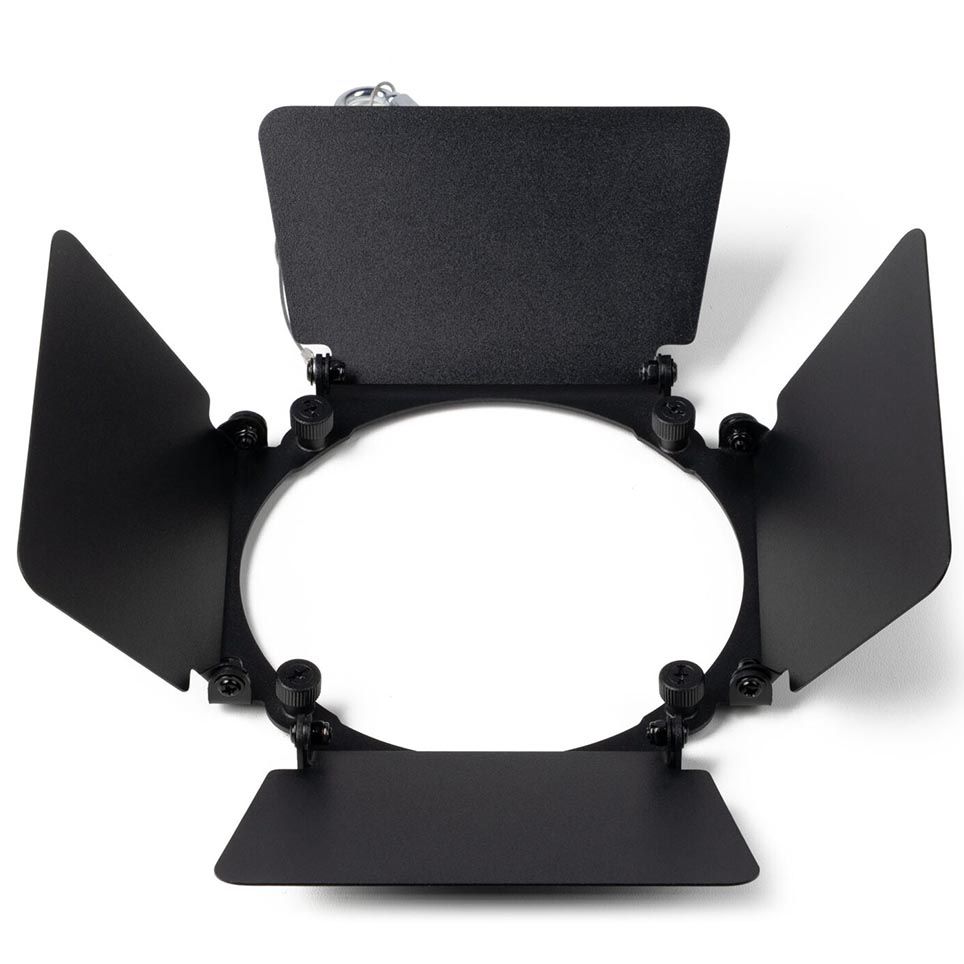 Constructed from durable black-finished metal, the barndoor is designed to survive the rigours of touring, rental and fixed installations alike. The robust hinges maintain their tension over time, ensuring consistent positioning show after show.