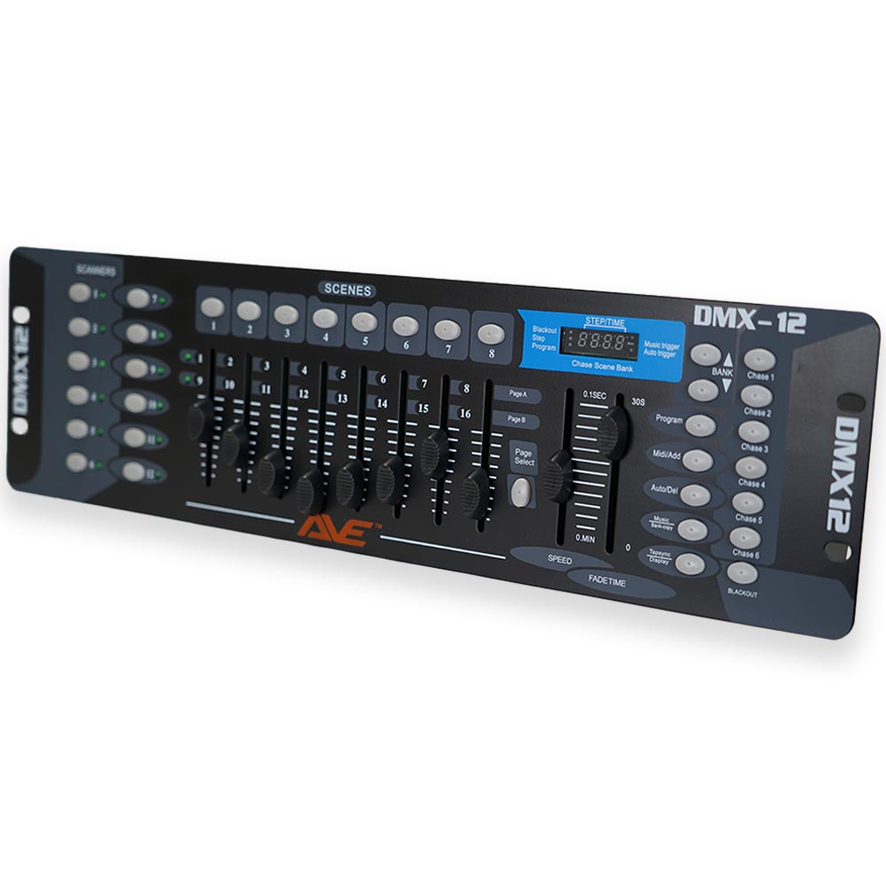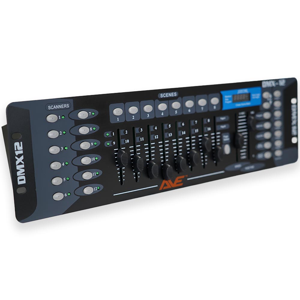 The AVE DMX12 Controller offers reliable and intuitive lighting control for DJs, venues, and small stage productions. Designed to manage up to 12 lighting fixtures with up to 16 channels each, it delivers flexible control over a wide range of DMX lighting effects.