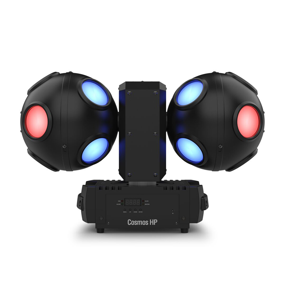 Blast into a whole new universe of dance floor energy with Chauvet DJ Cosmos HP. It’s a high-powered LED effect light that generates breathtaking razor-sharp beams of RGBW light. Experience astonishing aerial effects that cover the entire room and look amazing with or without haze. Independently controlled motors spin two LED-filled balls continuously in different directions creating stunning swirling effects.