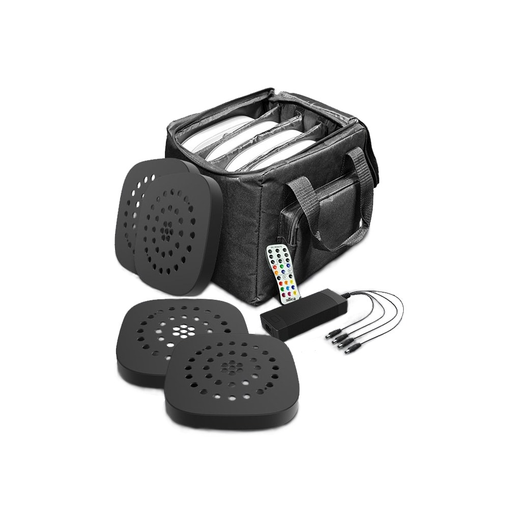 The Chauvet DJ Freedom Centrepiece is the perfect way to enhance your table decor and give your event the extra WOW factor. These slimline LED lights fit under your floral arrangements or decorations and let you light them from underneath. Supporting up to 11 kg and featuring 100% wireless operation with built-in rechargeable battery, and wireless DMX control. The Centerpiece fixtures each include 3 LED rings, each individually controlled allowing you to instantly create dynamic lighting effect to accent your decorations. Supplied as a pack of 4 lights, and includes black housing covers, carry case, IRC remote and charge station… Everything you need to elevate the elegance of your table setting.