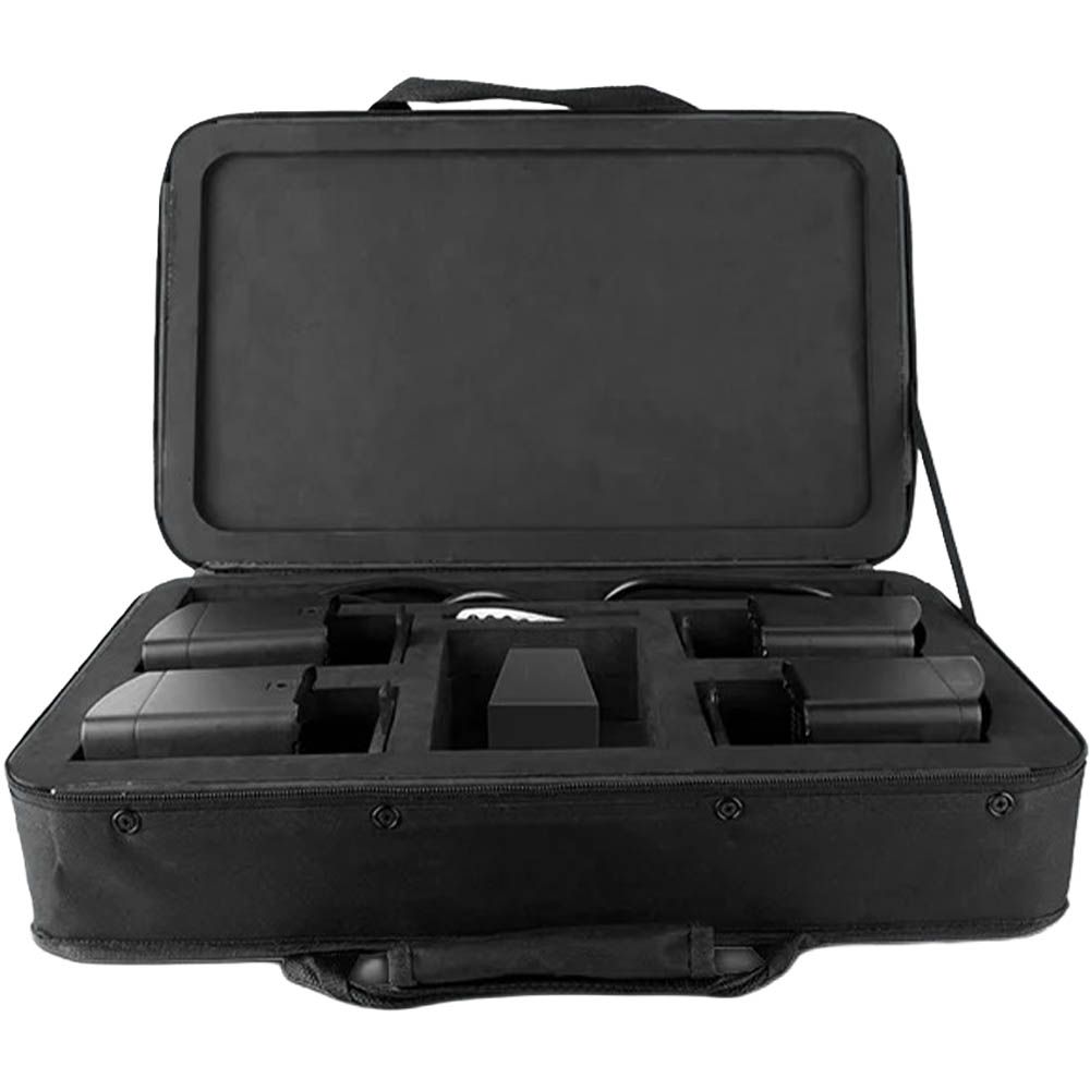 - Includes 4 fixtures, diffusers, carry bag, multi-charger, and remote