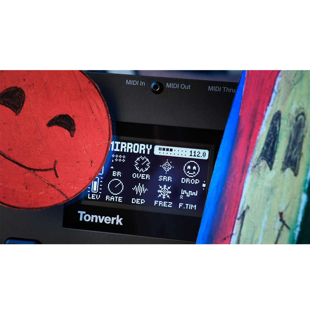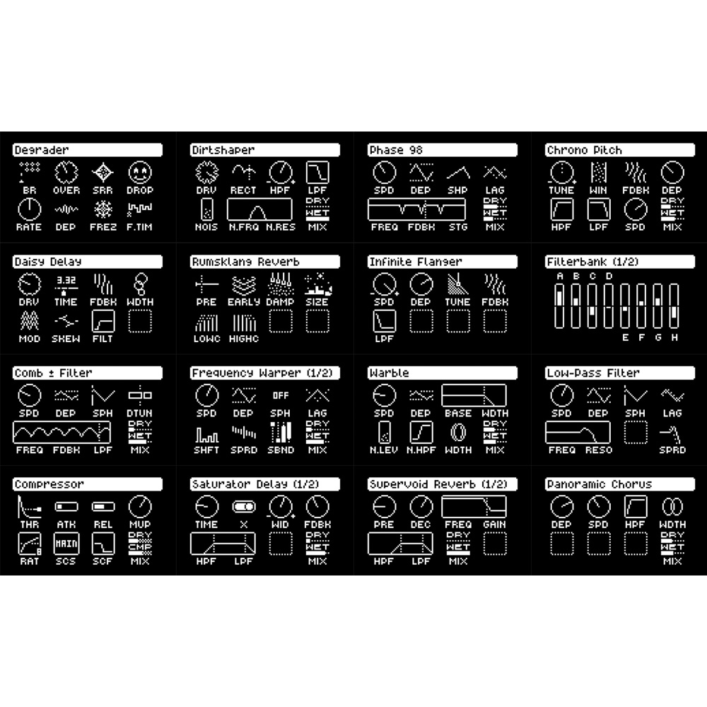 Tonverk delivers an impressive effects collection featuring both innovative newcomers and beloved Elektron classics. New additions include Rumsklang Reverb, Daisy Delay, Dirtshaper, Degrader, Chrono Pitch, Frequency Warper, Infinite Flanger, Phase 98, Filterbank, and Comb +/- filters. These effects can be applied across multiple stages of your signal chain for complex sound design.