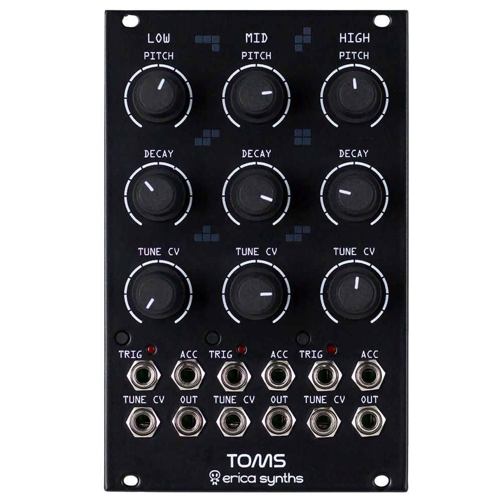 Firstly, combining low, mid, and high tom capabilities, the Erica Synths Toms lets you access a broad sonic palette. The pitch and decay controls allow you to fine-tune your tom sounds to perfectly fit your track or mood.