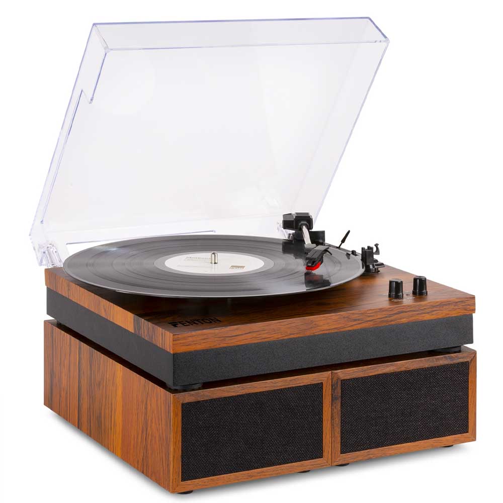 The Fenton RP165 is a simplistic yet elegant record player with a built-in amplifier. It features a set of 2x full-range stereo speakers that produce an output of 50W each. It allows you to play all your favourite 7”, 10” and 12” records with optimal sound quality in an elegant compact form factor.