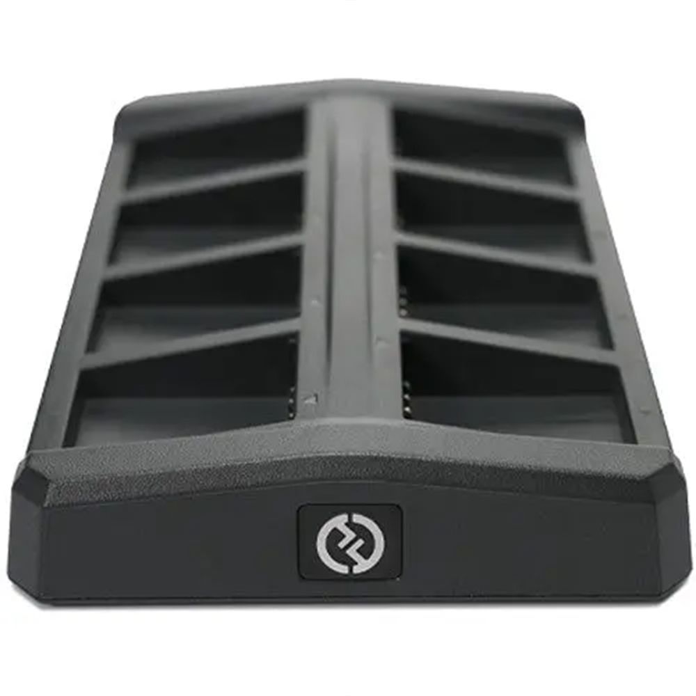 - Rechargeable batteries with up to 10 hours runtime and 8-bay charger included