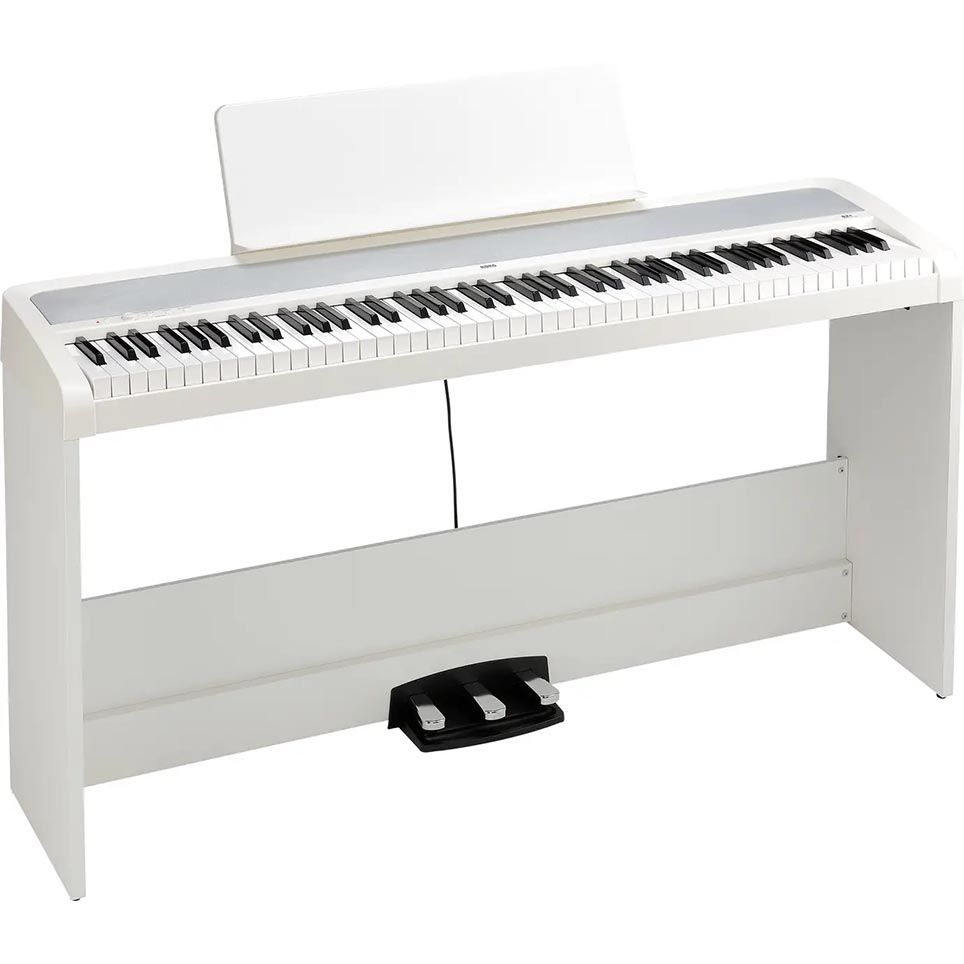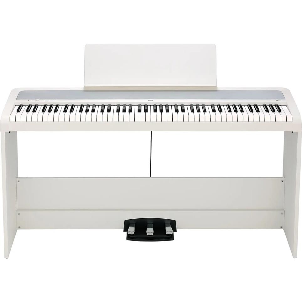 The Korg B2+ Digital Piano with stand and pedal unit in white; an all-inclusive package of the highest quality. Supplied with a bespoke wooden stand and the PU-2 triple pedal unit, this kit gives pianists of every level a ready-to-play solution.