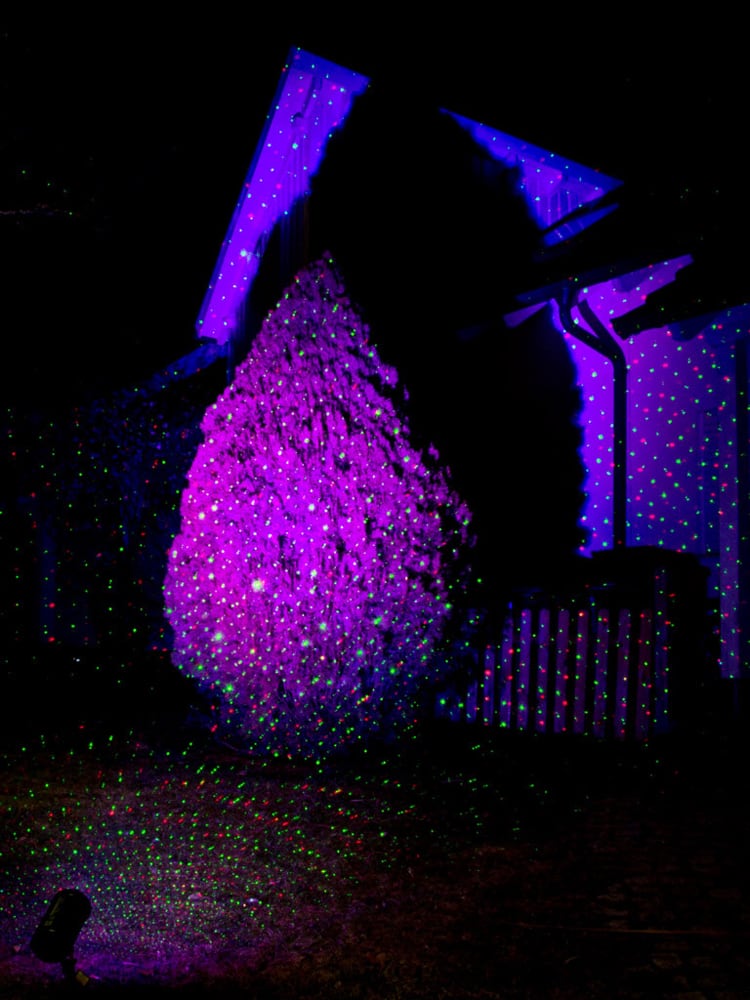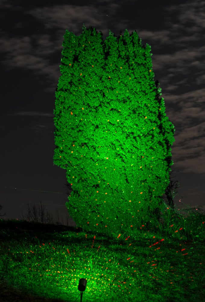 The Laserworld GS-80RG is a compact 80mW Red / Green laser light effect with LED lights for indoor and outdoor displays. Projecting hundreds of fine, clearly visible red & green laser dots that illuminate trees, plants and buildings. Plus, with the large scan angle covers even the largest areas easily. Perfect for decorating and drawing attention at Halloween, Christmas, or even your next party. The GS-80RG has a durable and IP65 waterproof housing, making it ideal for worry-free use outside near ponds, pools or in the garden. Supplied with a convenient IR remote control to turn the laser on and off with ease.