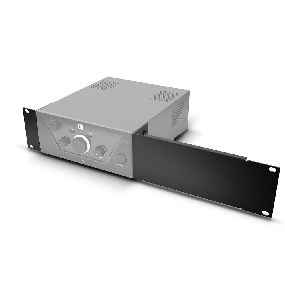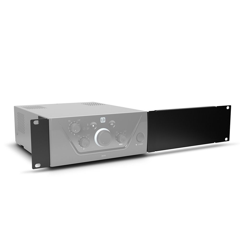 Fabricated from 1.5–2 mm painted steel and finished in sleek black, the kit matches LD SYSTEMS hardware both visually and mechanically. Its precision-cut brackets and plates guarantee vibration-free stability while preserving the amplifier’s cooling and cable management paths.