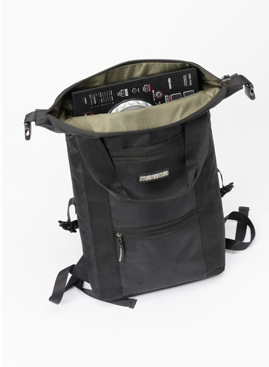 The Magma 47851 DIGI Stashpack is the ultimate DJ gear bag designed to make carrying your gear a breeze. The bag sleekly accommodates essential DJ gear and accessories for your day to day travel needs. Equipped with a fully padded laptop sleeve fitting up to 17” laptops, a main compartment that can hold an additional stash of 12” records, books, or large file folders. The main compartment also has a zippered opening allowing you an extra 5 cm when unfolded to fit small DJ-controllers such as Kontrol S2, DDJ-SB3, DDJ-WeGo, and other similar-sized controllers. Great for travelling DJs and international artists.