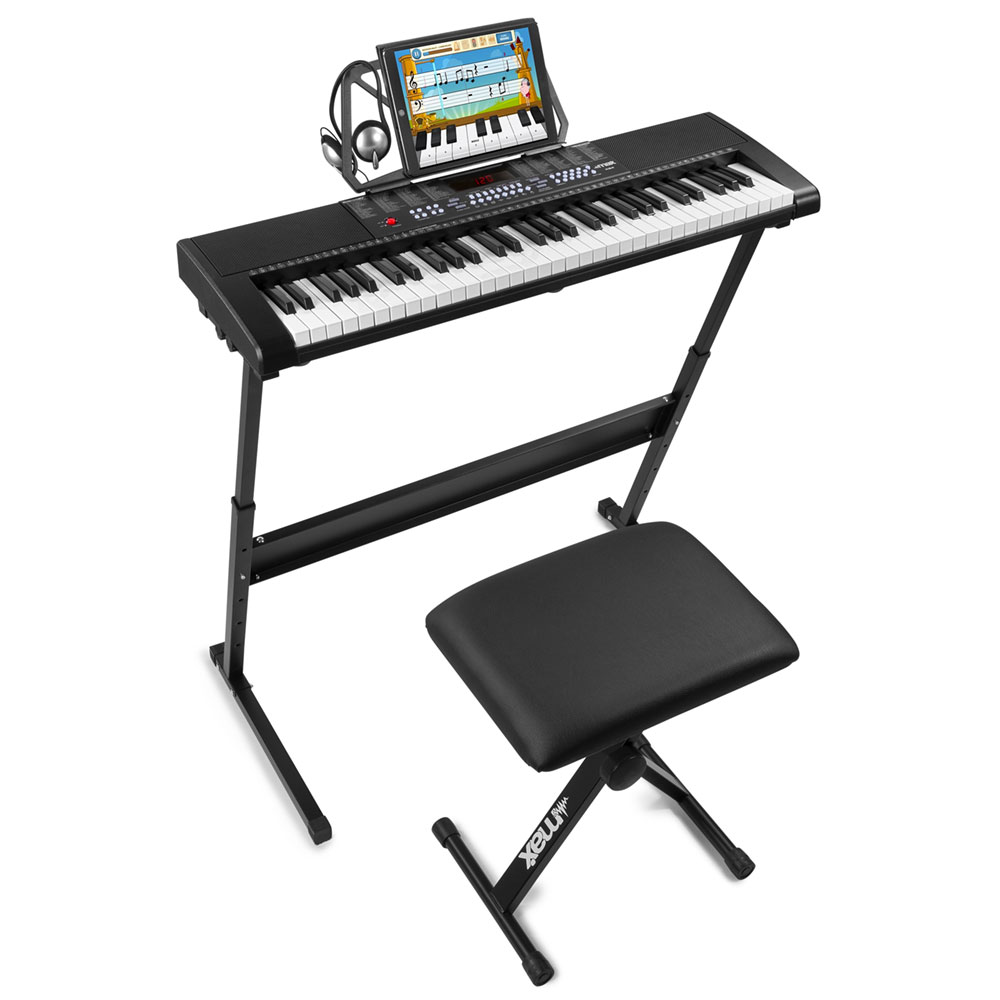 The MAX KB4SET with 61 keys and training functions is the ideal keyboard for everyone that wants to start playing the keyboard. The KB4 offers a big enough challenge for everybody, so you’ll have pleasure for years with this keyboard. You’ll learn to know the keys with the integrated training function, so you’ll find them blindly. The MAX KB4 is provided with 61 keys (5 octaves) and is, therefore, the perfect choice for a beginner keyboardist. In addition, there are many apps for Android and iOS, like Simply Piano from JoyTunes, to help you learn with fun and ease. Many instruction videos are also found on YouTube to learn playing.