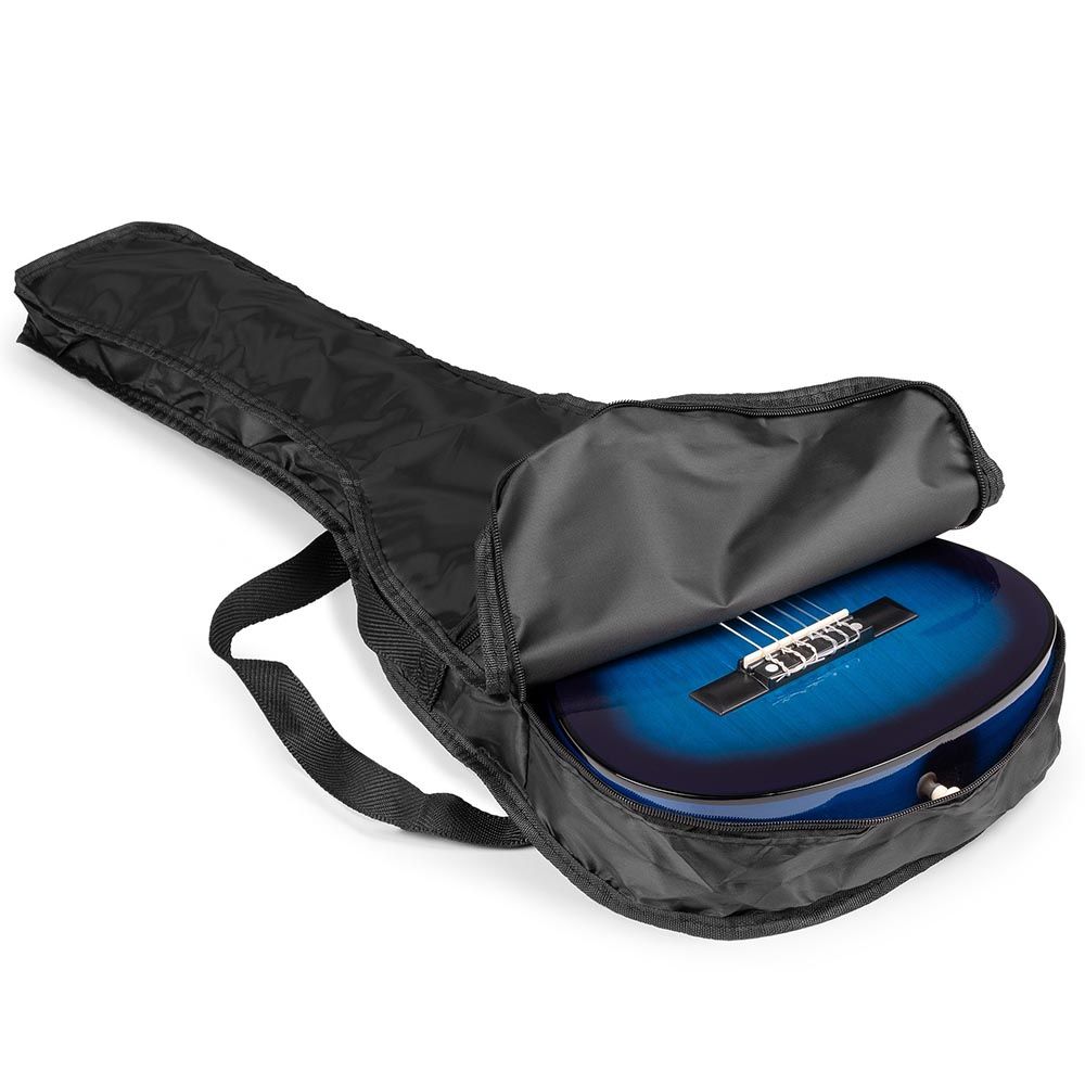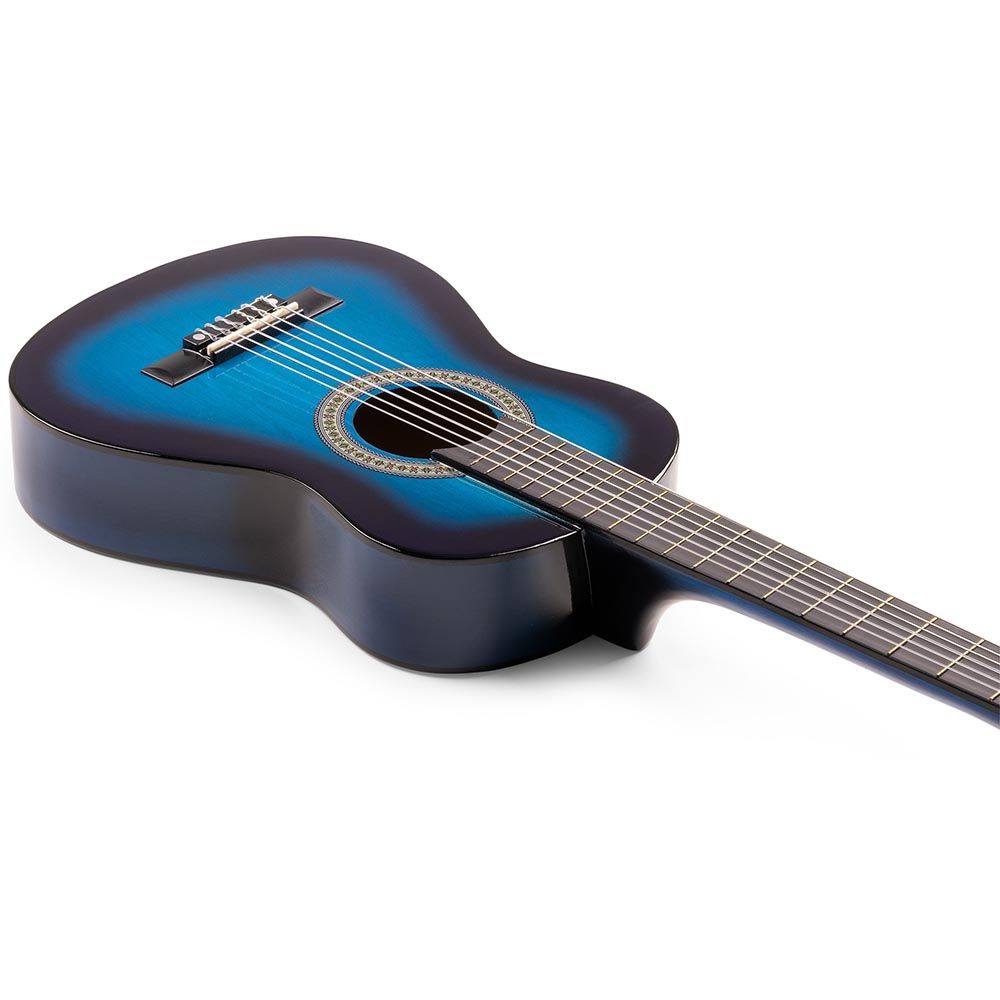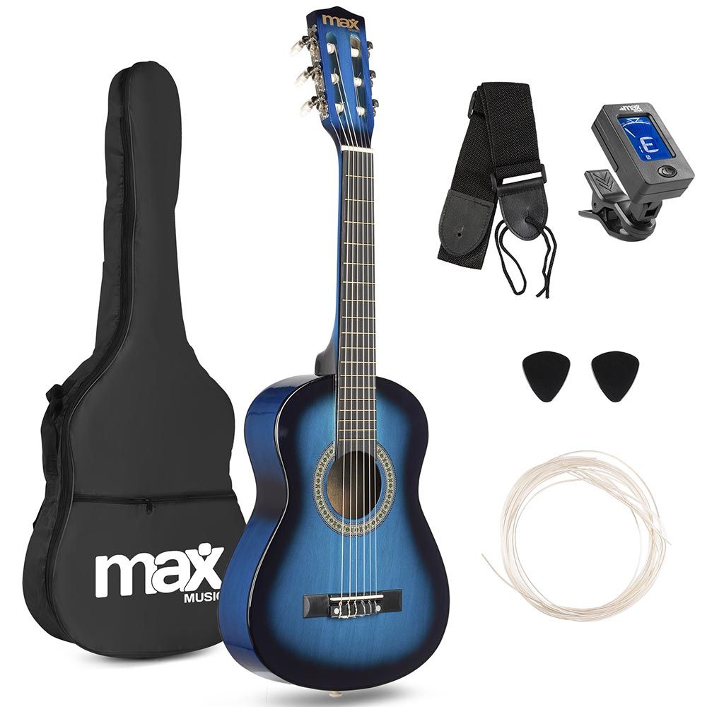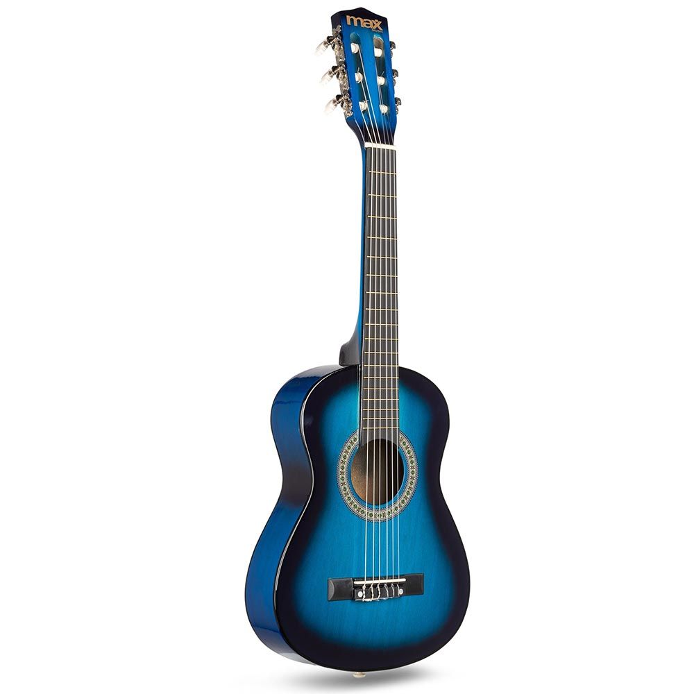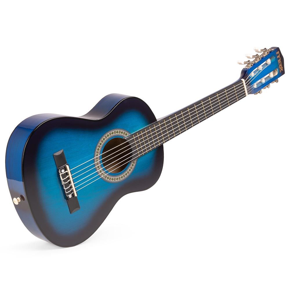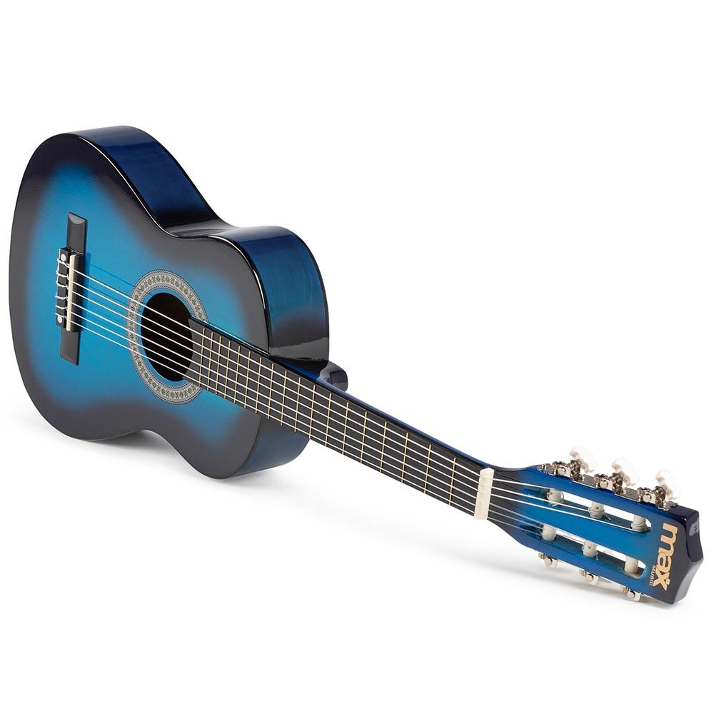 Step into the world of music with the Max SoloArt Junior 1/4 Classic Guitar Pack Blue. Specially crafted for young beginners who want to learn guitar effortlessly. This 1/4 size classical guitar with nylon strings offers a comfortable grip and charming sound. Consequently, making practice and play truly enjoyable.