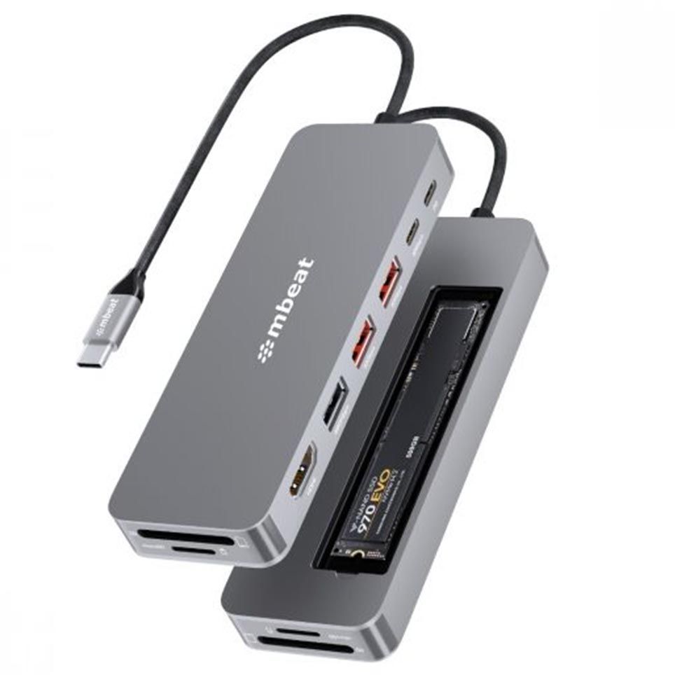 The MBeat Elite 9-in-1 USB-C Multiport Hub turns a single USB-C port into a fully-fledged workstation with integrated high-speed storage. Seamlessly connect displays, drives and accessories while keeping your laptop powered wherever work takes you.