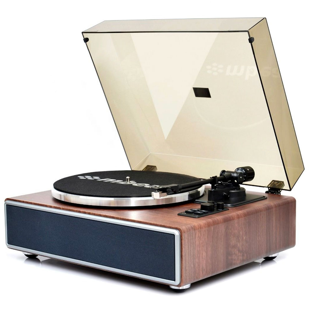 The mBeat MB-PT-38 record player/turntable gives you a true hi-fi experience. Sporting a solid aluminium-cast platter as well as a belt-drive system that dampens unwanted resonance and noise. Listen to your favourite 33/45 RPM records, or use the Bluetooth functionality to stream straight from your phone or tablet.
