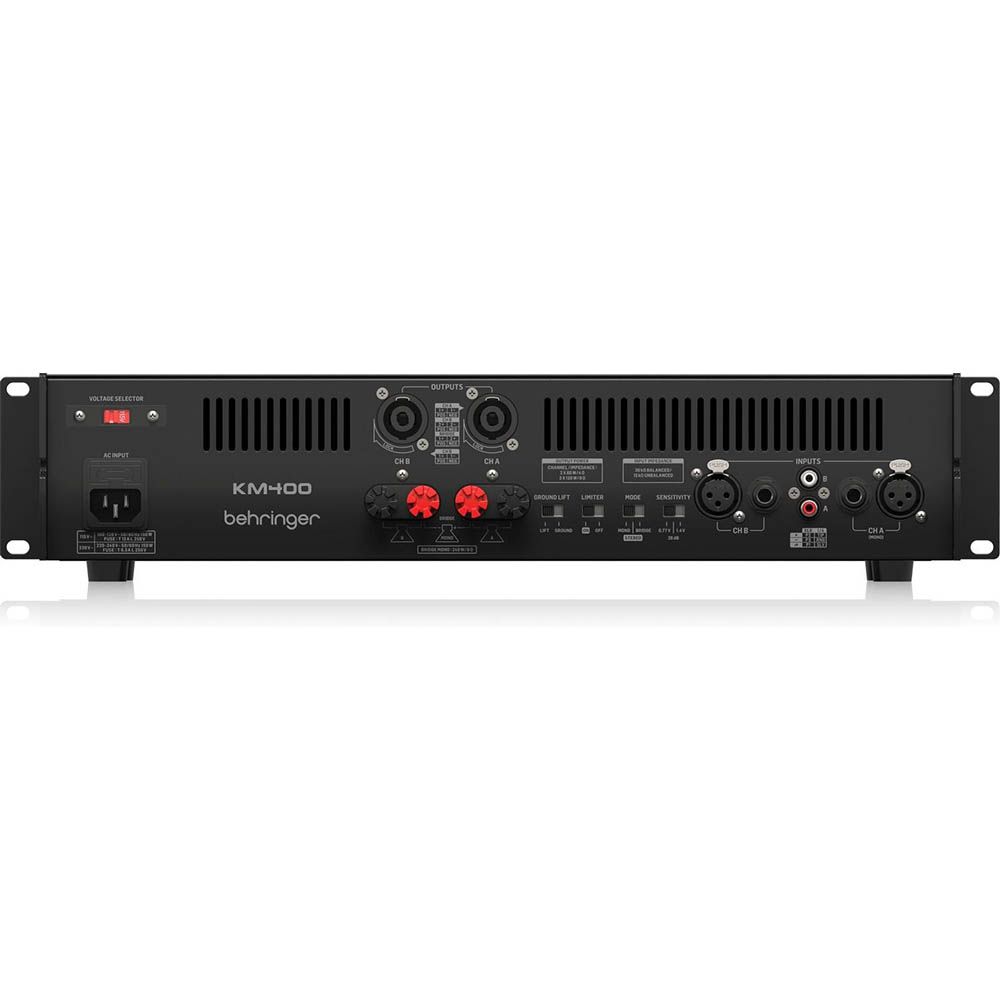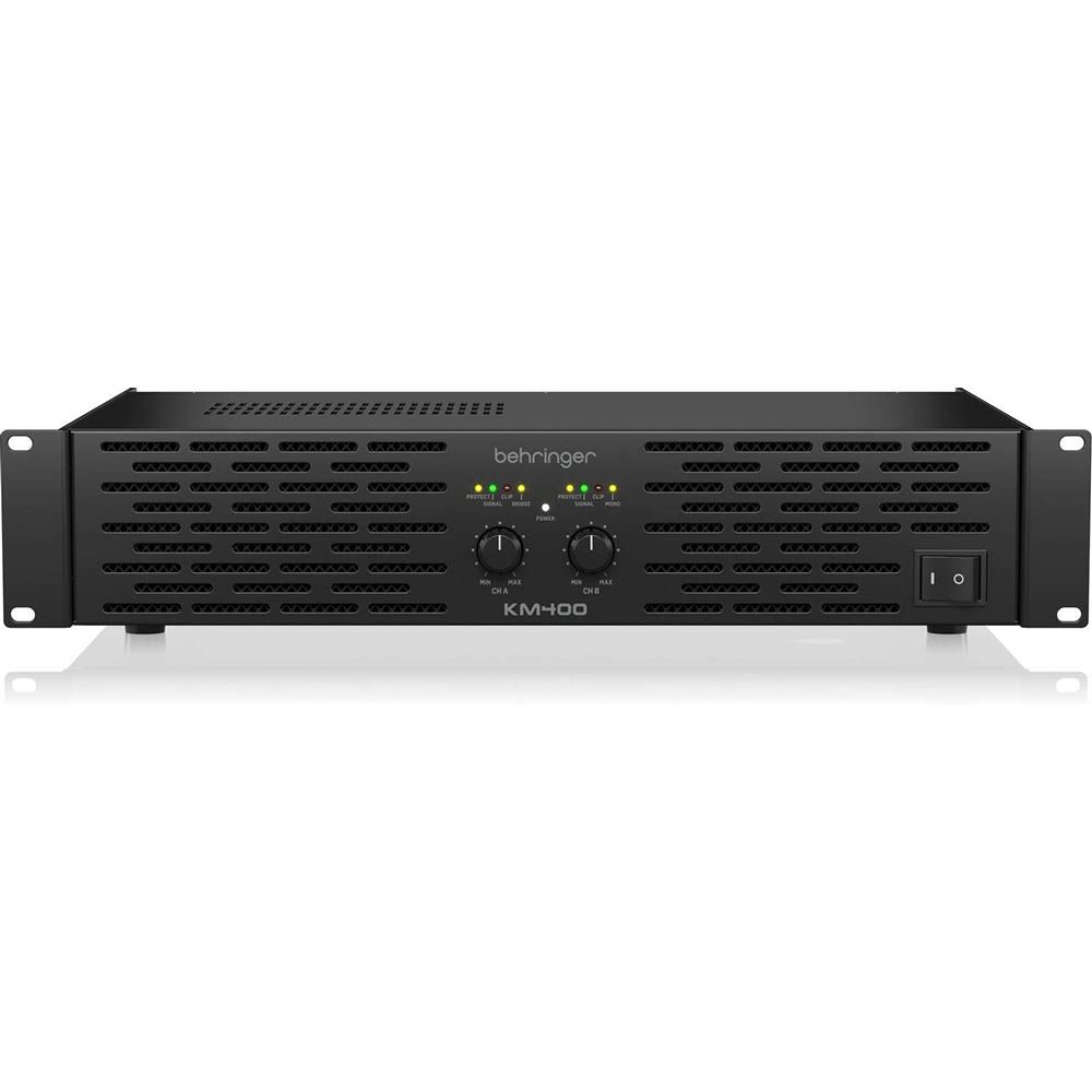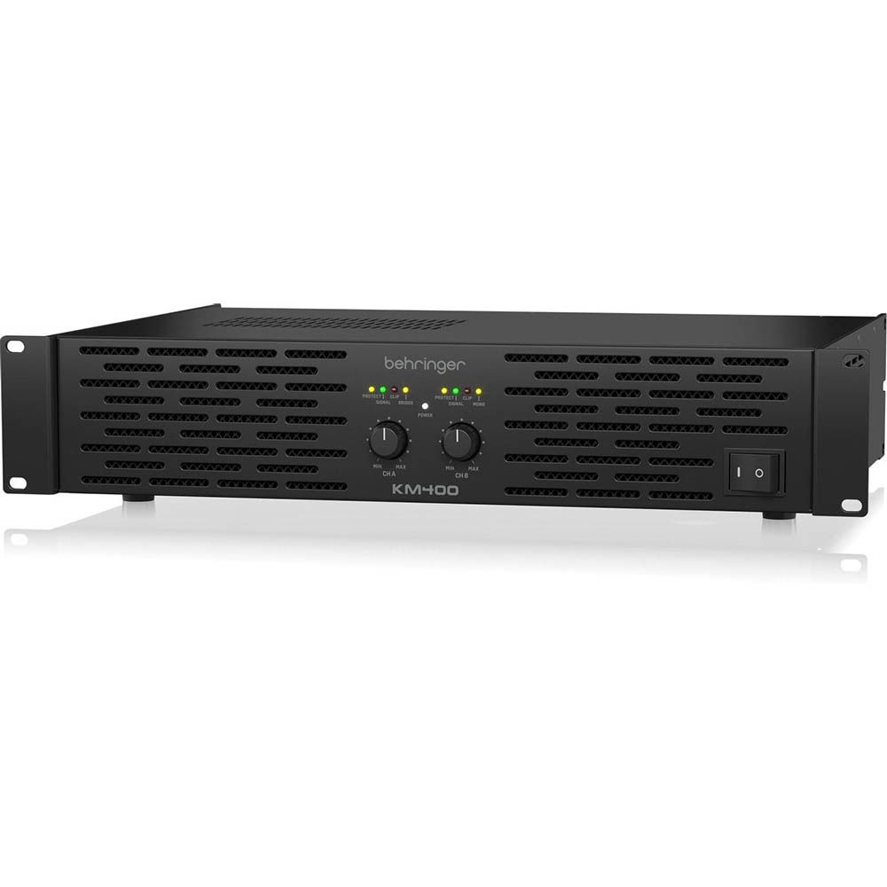 From its rugged 2U all-steel rackmount chassis to secure balanced XLR inputs and twist-lock speaker connectors, the KM400 is engineered for durability and reliable noise-free operation. Plus, with an ultra-efficient switch-mode power supply and front-to-back ventilation, it stays cool and stable even under heavy load.