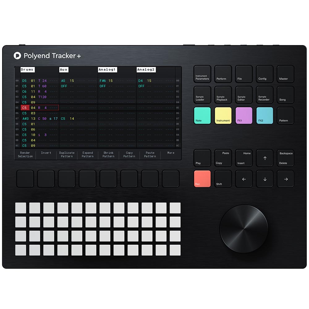 Tracker+ features upgraded hardware with a faster microcontroller, more memory, a robust jog wheel, and rubberized keys for smooth operation. Stereo line in/out, MIDI I/O, and USB-C connectivity make it easy to integrate into any studio or live setup.