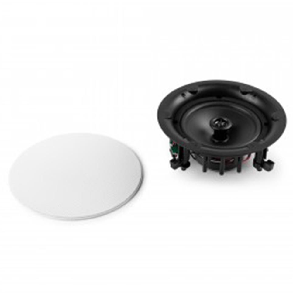 Included are four low-profile 6.5″ two-way ceiling speakers engineered with a high-end crossover and rigid polypropylene cone. Consequently, enjoy a balanced, room-filling audio spanning 20 Hz – 20 kHz. Moreover, magnetic metal grilles sit virtually flush with the ceiling and can be painted to match any interior.