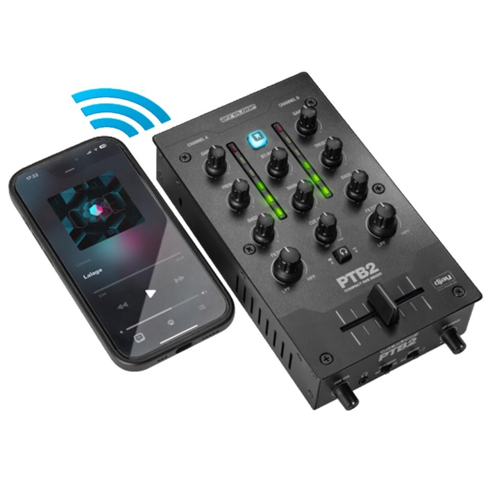 Moreover, equipped with a built-in 4×4 USB-C DVS audio interface, the PTB-2 lets you combine traditional analogue mixing with digital advantages. Bluetooth connectivity and a 3.5 mm AUX input add wireless and wired streaming options. Thus, you can effortlessly incorporate music from your smartphone or tablet into your sets.