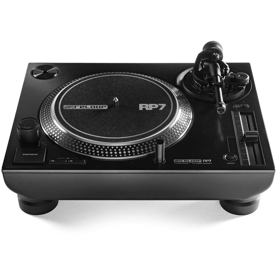 A world-first in professional DJ equipment, the Reloop RP-7 pays tribute to the enduring 45s culture with the exclusive 7″ vinyl edition. Built for collectors, vinyl purists and professional DJs, innovative engineering combines with classic aesthetics to deliver utmost quality.