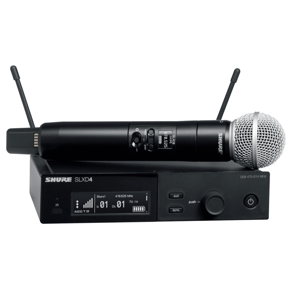 Also, SLXD24/SM58 Wireless System delivers transparent, 24-bit digital audio and rock-solid RF performance for a wide range of applications. Furthermore, SLXD24/SM58 is built for day-long presentations to nighttime performances.