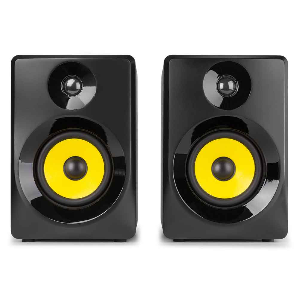 The Vonyx SMN40B Active Studio Monitors gives you a pair of professional-quality 4″ speakers. Ideal for referencing as well as multimedia use, the SMN40B monitors deliver a flat frequency response. So they’re a great entry-level solution for studio recording, mixing, and mastering duties.