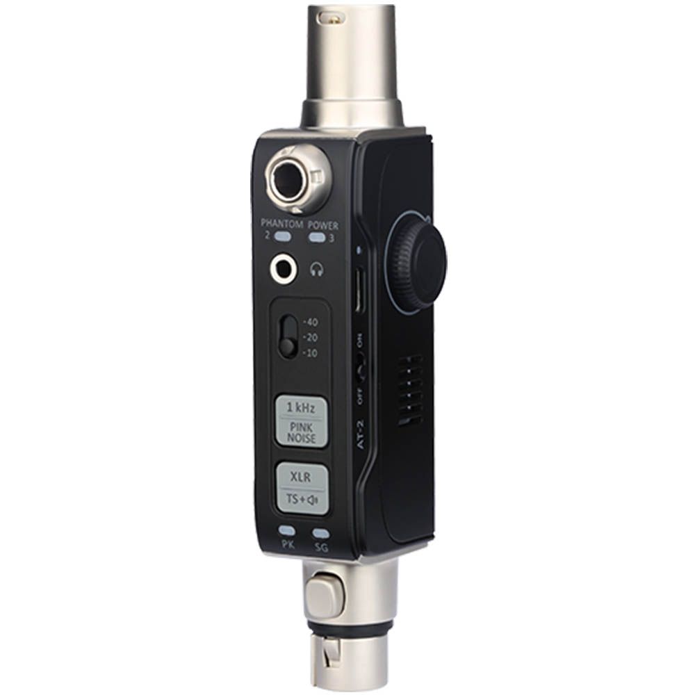 The built-in signal generator outputs a clear 1 kHz sine wave or pink noise through multiple connectors. It offers three output levels to suit any situation, letting you quickly check your gear’s response and signal strength. Whether you’re working with XLR, 1/4″, or 1/8″ connections, the AT-2 covers you.