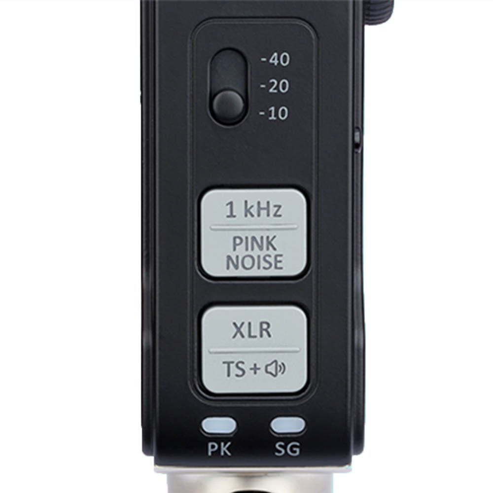 - Signal Generator emits 1 kHz tones or pink noise audio signals