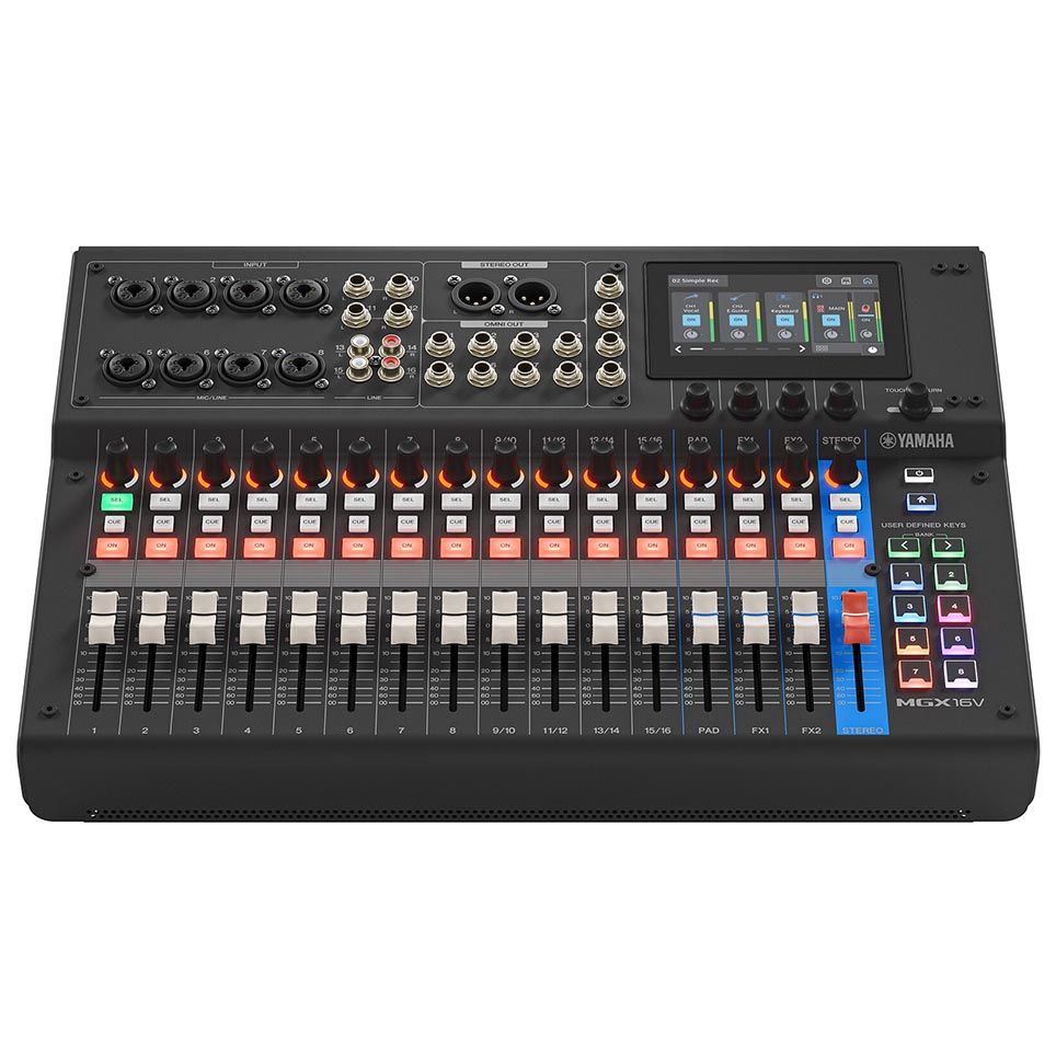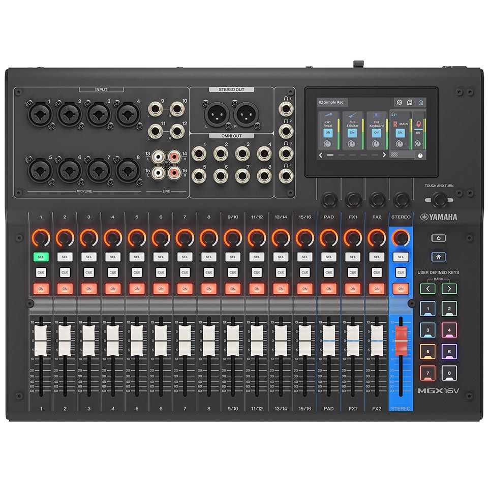 The MGX16V features 8 mono and 4 stereo input channels. Also, a versatile Sound Pad and 2 FX returns, all controllable via a 4.3-inch touchscreen with five intuitive control knobs. Moreover, its comprehensive bus system supports 1 STEREO and 8 MIX buses, providing flexible routing options. The inclusion of an HDMI-to-USB interface allows simultaneous audio and video capture with real-time pass-through. Ultimately, ideal for hybrid live events and streaming setups.